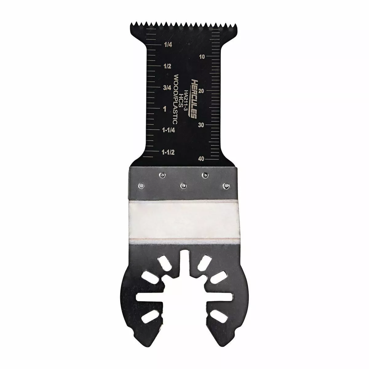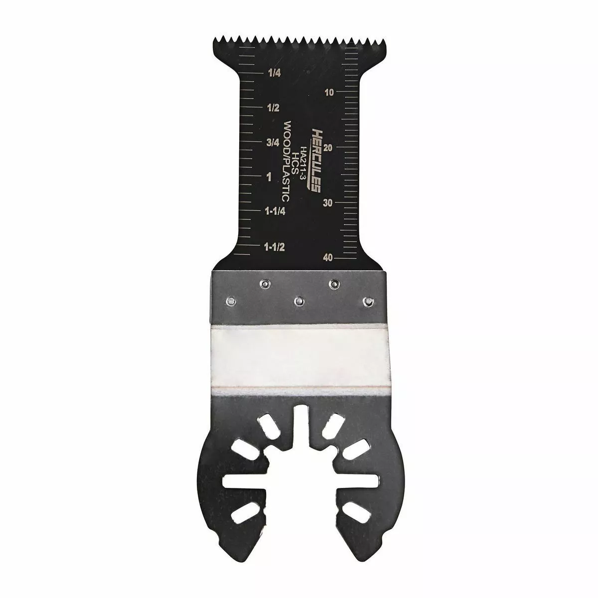 The HERCULES™ 1-3/16 in. Multi-Tool High Carbon Steel Reduced Shank Plunge Blade is designed with high strength welds to stand up to heavy duty applications. The Anti-Jam reduced neck lets you make smoother cuts with less chance of jamming. The precision sharpened high carbon steel teeth stay sharper longer when cutting wood. The blade is laser-etched with depth markings for making precise cuts.