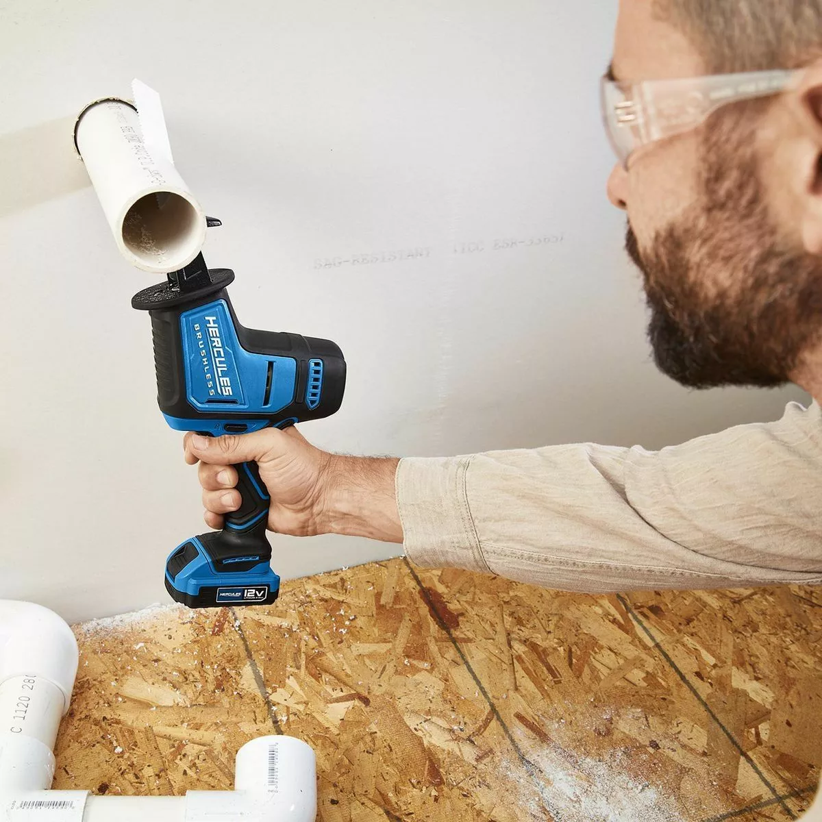 The HERCULES® 12V Brushless Cordless Compact Reciprocating Saw is 30% more compact, 48% lighter* for easy one-handed use ideal for overhead cutting. This reciprocating saw cuts faster than corded and uses brushless technology for longer tool life, extended run-time and up to 3000 SPM for the power to handle the toughest jobs. The 5/8 in. stroke delivers fast, efficient cuts. The pivoting shoe provides cutting control in a variety of applications. Designed for keyless blade changes for less downtime between cuts.