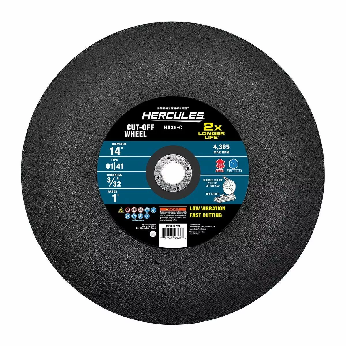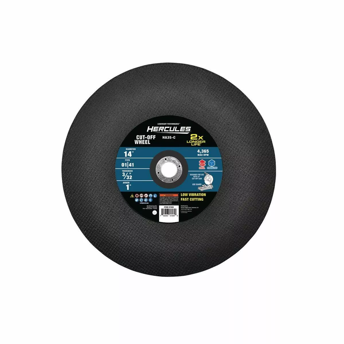 HERCULES™ cut-off wheels are constructed with premium abrasive grains and a high quality resin bond that delivers up to 2X longer life*. Ideal for use with a wide variety of metalworking cutting applications, these cut-off wheels are designed to deliver super fast, clean cuts. Designed for use with a 14 in. cut-off saw, use guard.