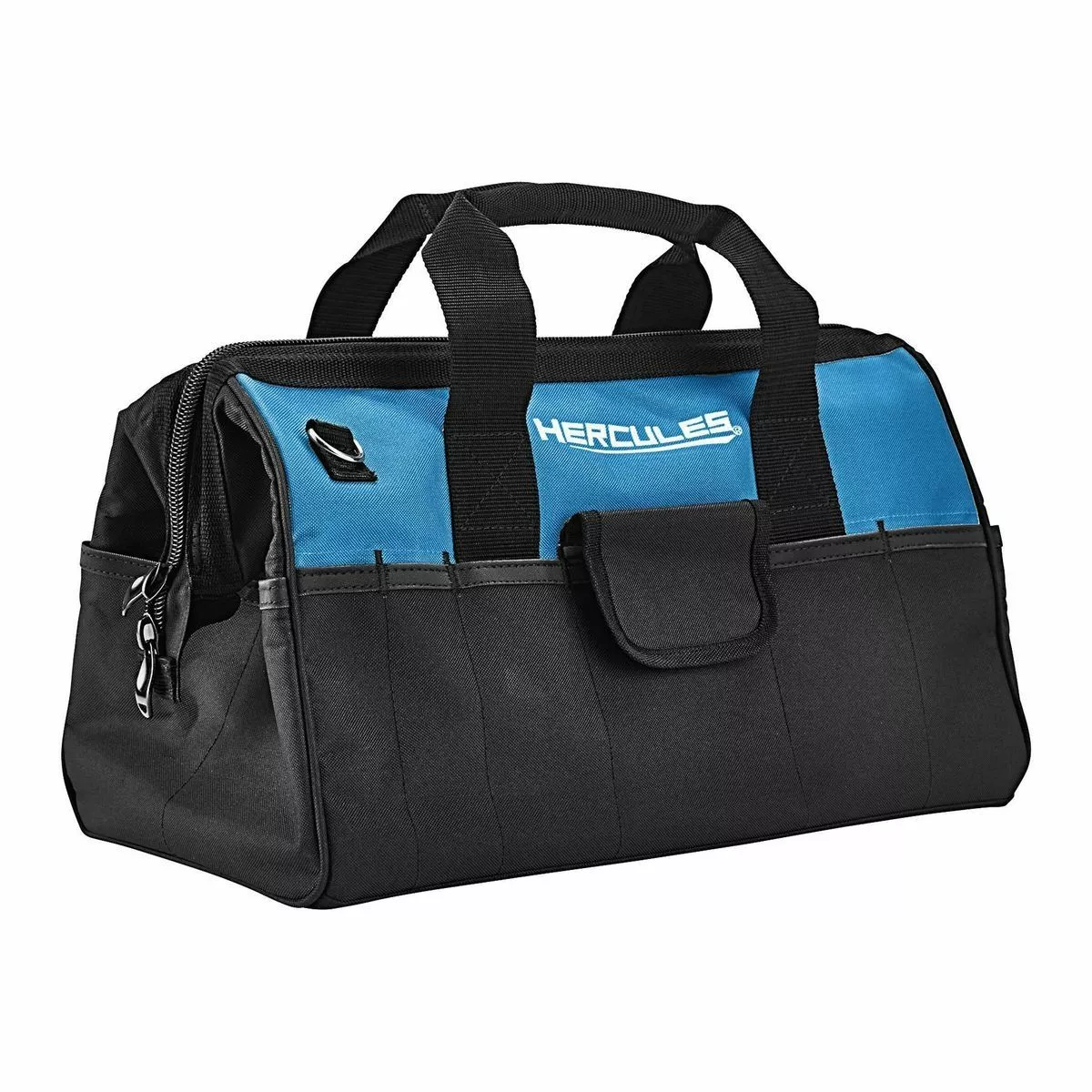This 28 pocket tool tote bag from HERCULES™ is constructed with SUPER-TOUGH tear-resistant fabric for the strength and durability to carry your most important tools. Featuring a durable, heavy duty stitching, large storage compartment with 28 pockets, tape measure holder and heavy duty shoulder straps.