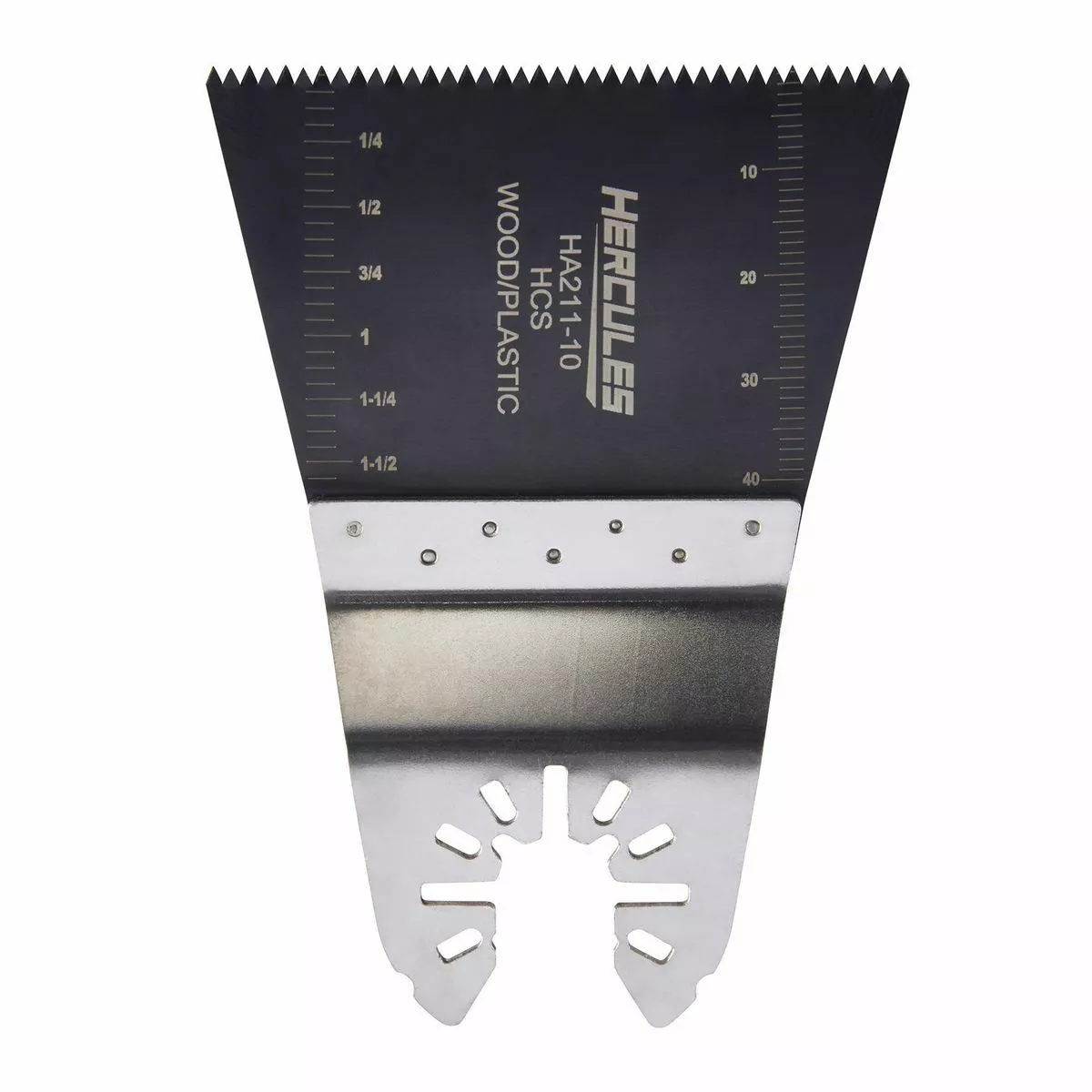 The HERCULES™ 2-5/8 in. Wide Cutting Blade is designed with high strength welds to stand up to heavy duty applications. The offset blade is ideal for making clean flush cuts. The precision sharpened high carbon steel teeth stay sharper longer when cutting wood. The blade is laser-etched with depth markings for making precise cuts.
