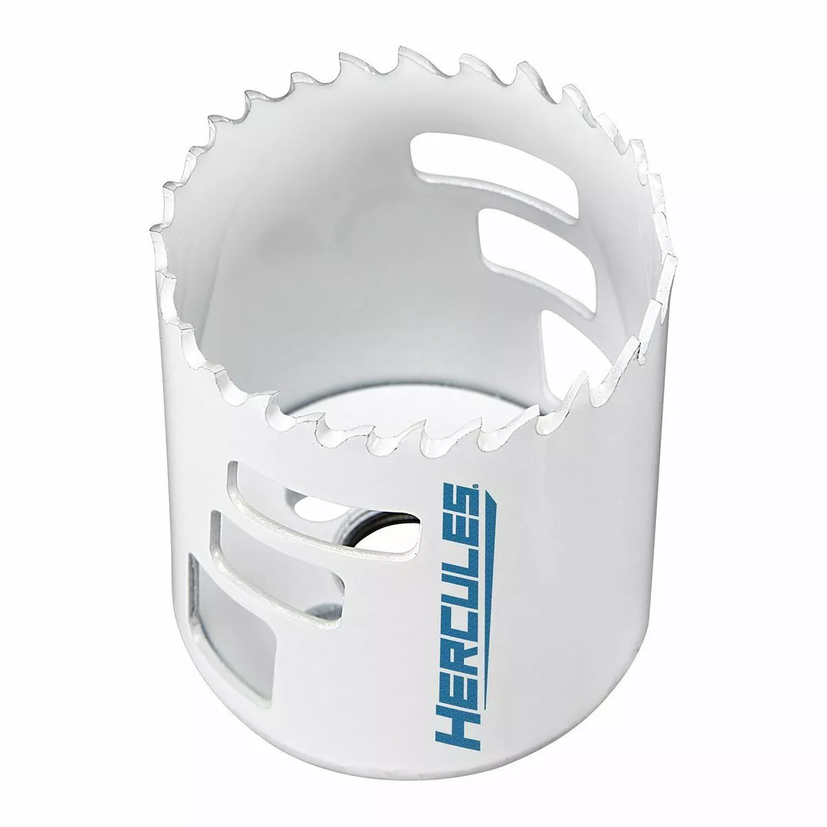 Engineered for legendary performance, the HERCULES™ Hole Saw quickly cuts through a wide range of materials, including wood, plastic, aluminum, brass, steel alloys and stainless steel. The hole saw is constructed with sharp, long-lasting M42 cobalt cutting edges to deliver quick, clean, precise cuts.