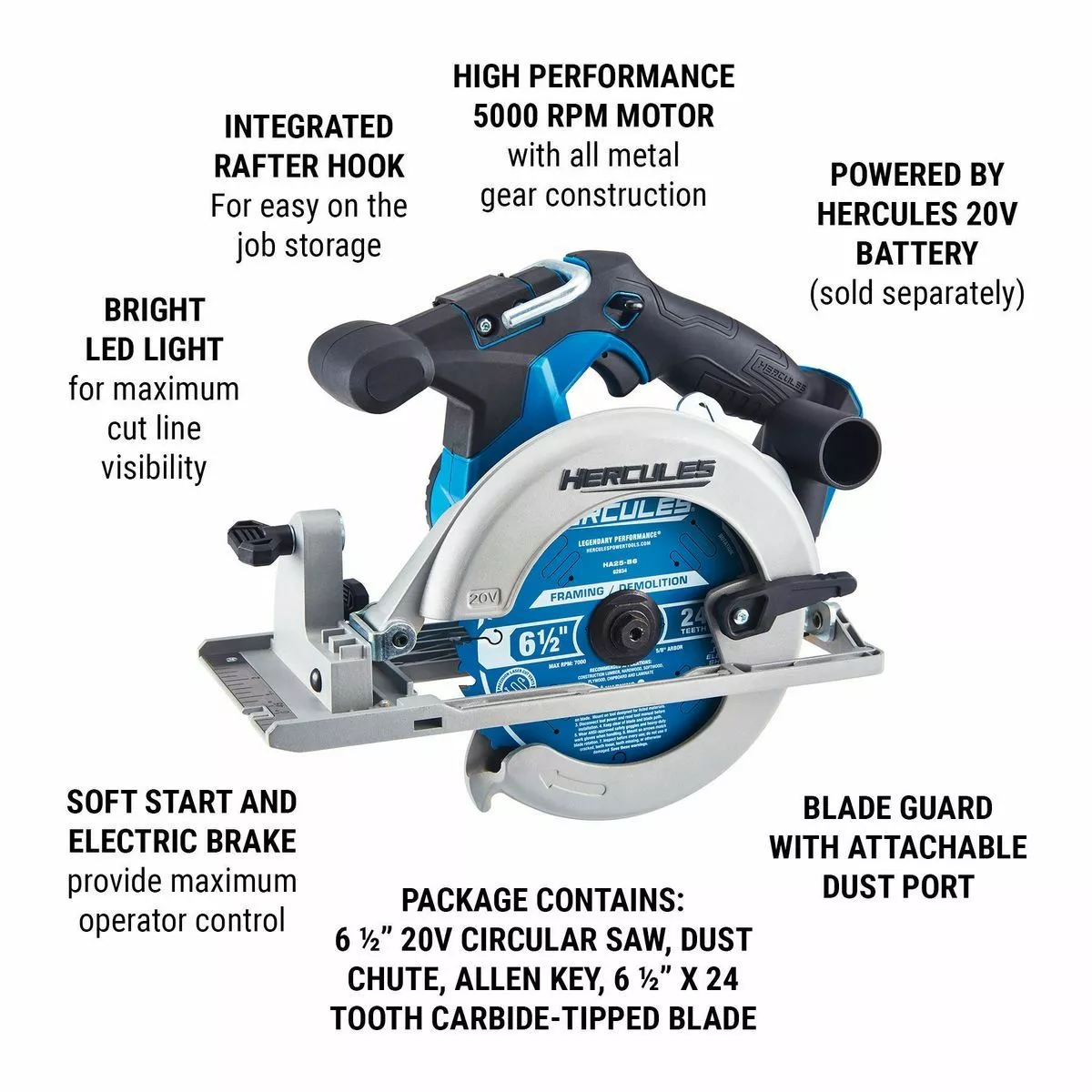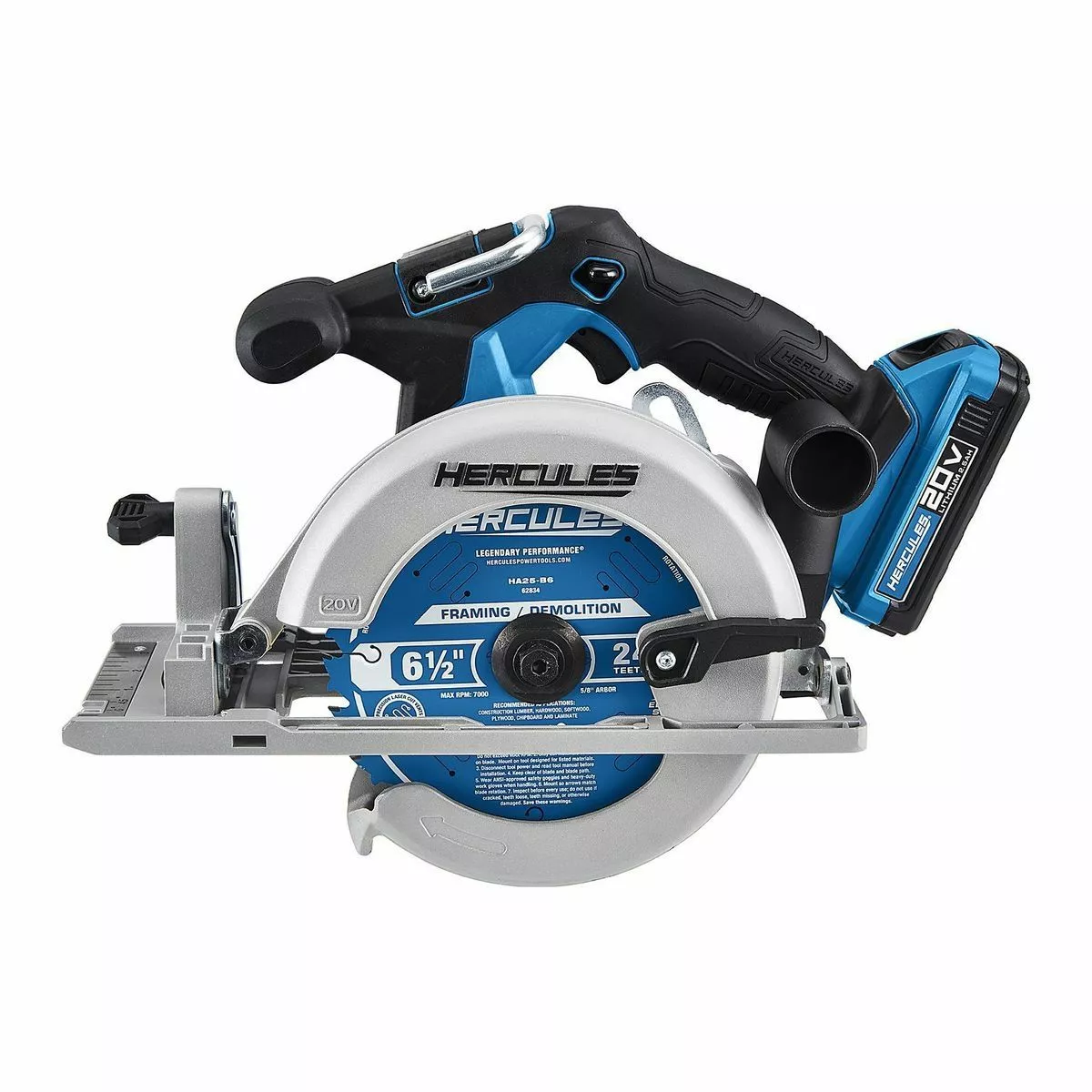 This powerful HERCULES® cordless circular saw cuts 25% faster and delivers 3x more run time*. The high efficiency 5000 RPM motor with soft start and all metal gear construction provides smooth powerful cuts for a variety of tough materials. Buy with confidence with an included no-questions-asked risk-free trial, with additional coverage up to 2 years.