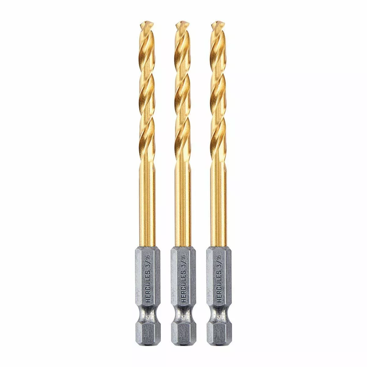 HERCULES 3/16 in. Impact Rated Hex Shank Titanium Drill Bit Set, 3 Piece -Cheap Hercules Store 64888 W4