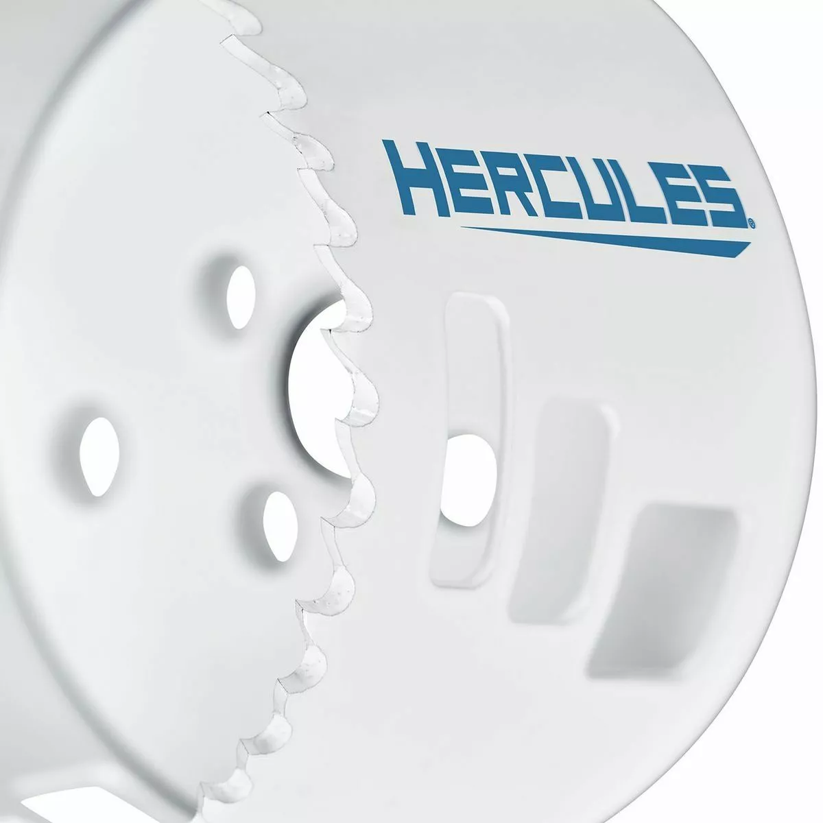 Engineered for legendary performance, the HERCULES™ Hole Saw quickly cuts through a wide range of materials, including wood, plastic, aluminum, brass, steel alloys and stainless steel. The hole saw is constructed with sharp, long-lasting M42 cobalt cutting edges to deliver quick, clean, precise cuts.