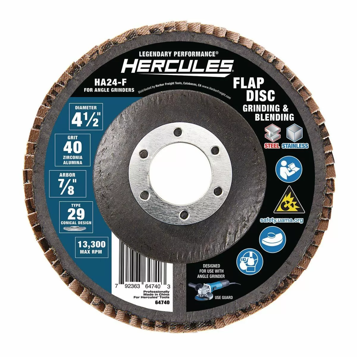 This HERCULES™ flap disc has a premium blend of tough zirconia abrasive for ultra-fast stock removal and surface finishing. The durable fiberglass flap plates flex under pressure for easy smoothing and shaping of contours.