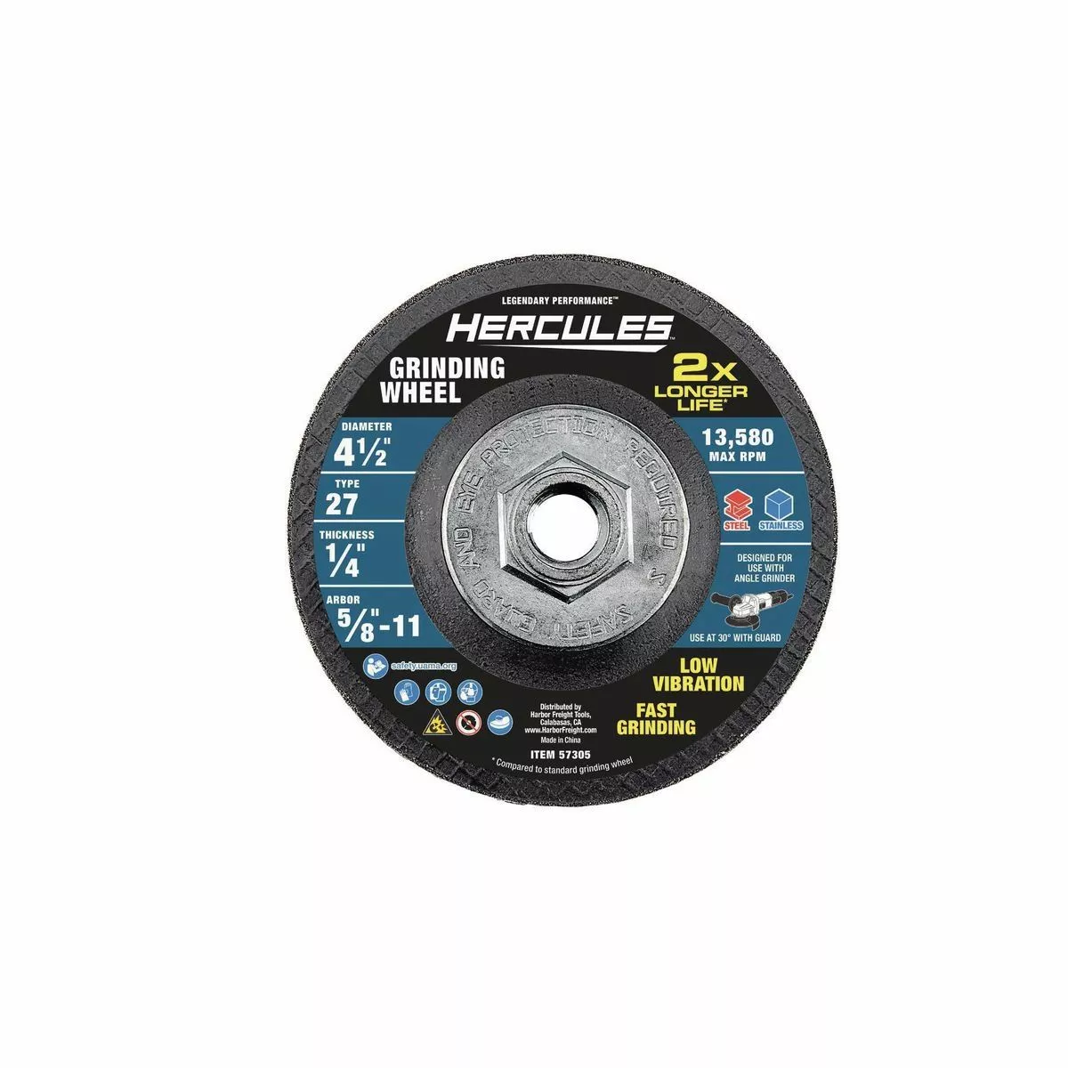 The HERCULES™ 4-1/2 in. Right Angle Grinding Wheel is superior in durability and performance. Ideal for use with a wide variety of metal grinding applications, this wheel uses premium quality abrasive for the toughest applications. Get the best results when grinding, smoothing, shaping metal and removing weld slag.