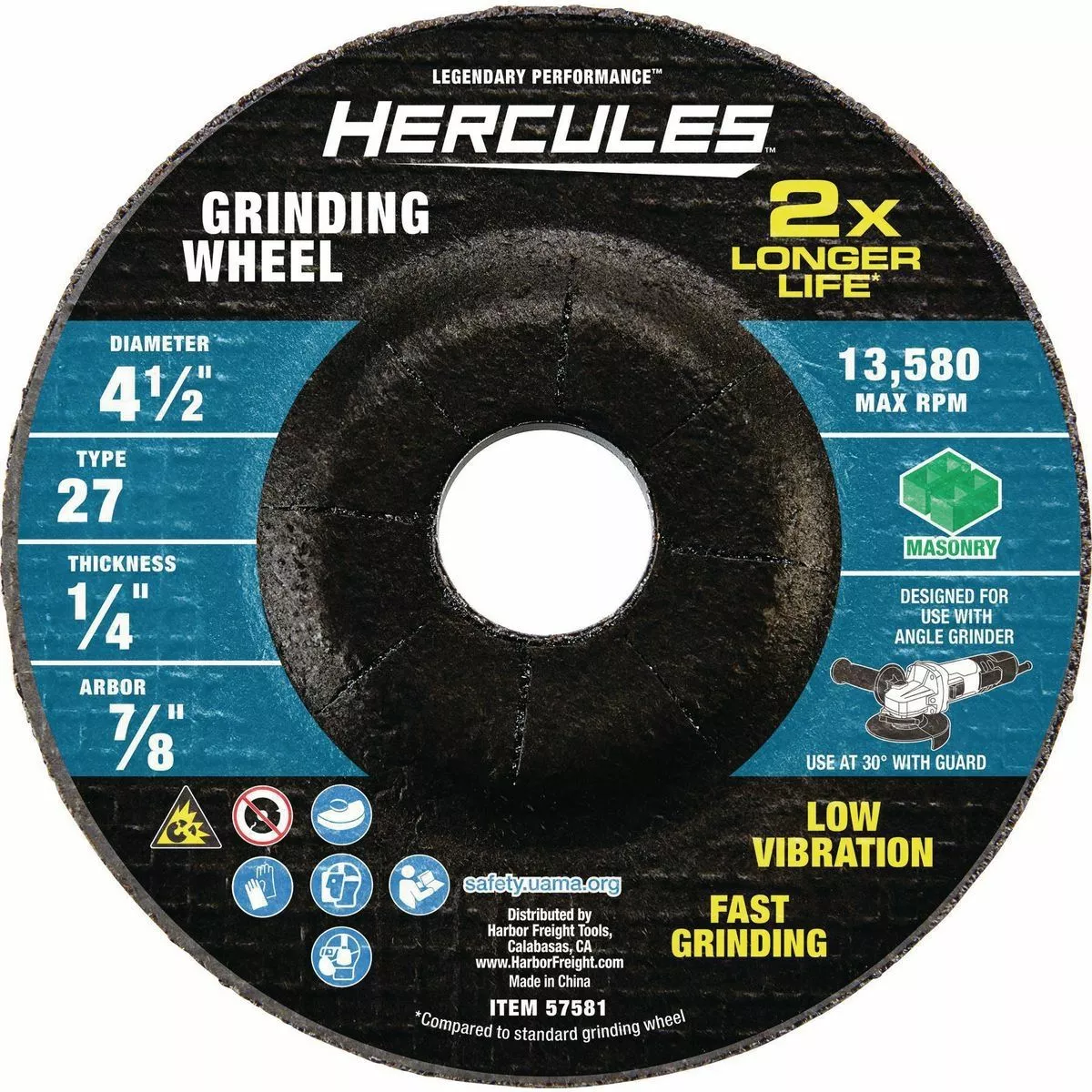 HERCULES™ superior grinding wheels are both durable and fast cutting. Ideal for use with a wide variety of masonry grinding applications, this wheel is designed with superior grain abrasive. Grind edges and bevels on masonry with this fast cutting grinding wheel. Best used on Right Angle Grinders with the proper safety guard.