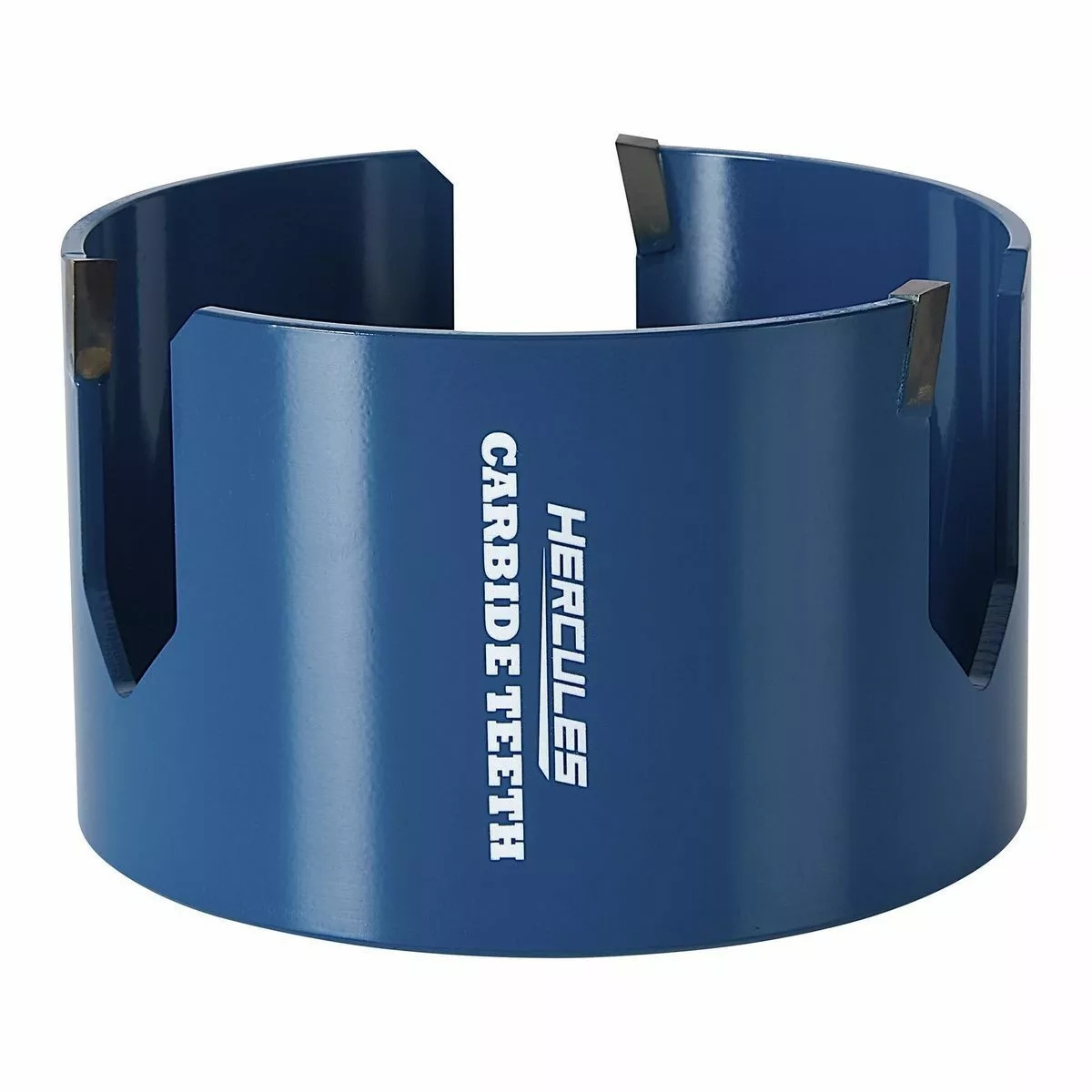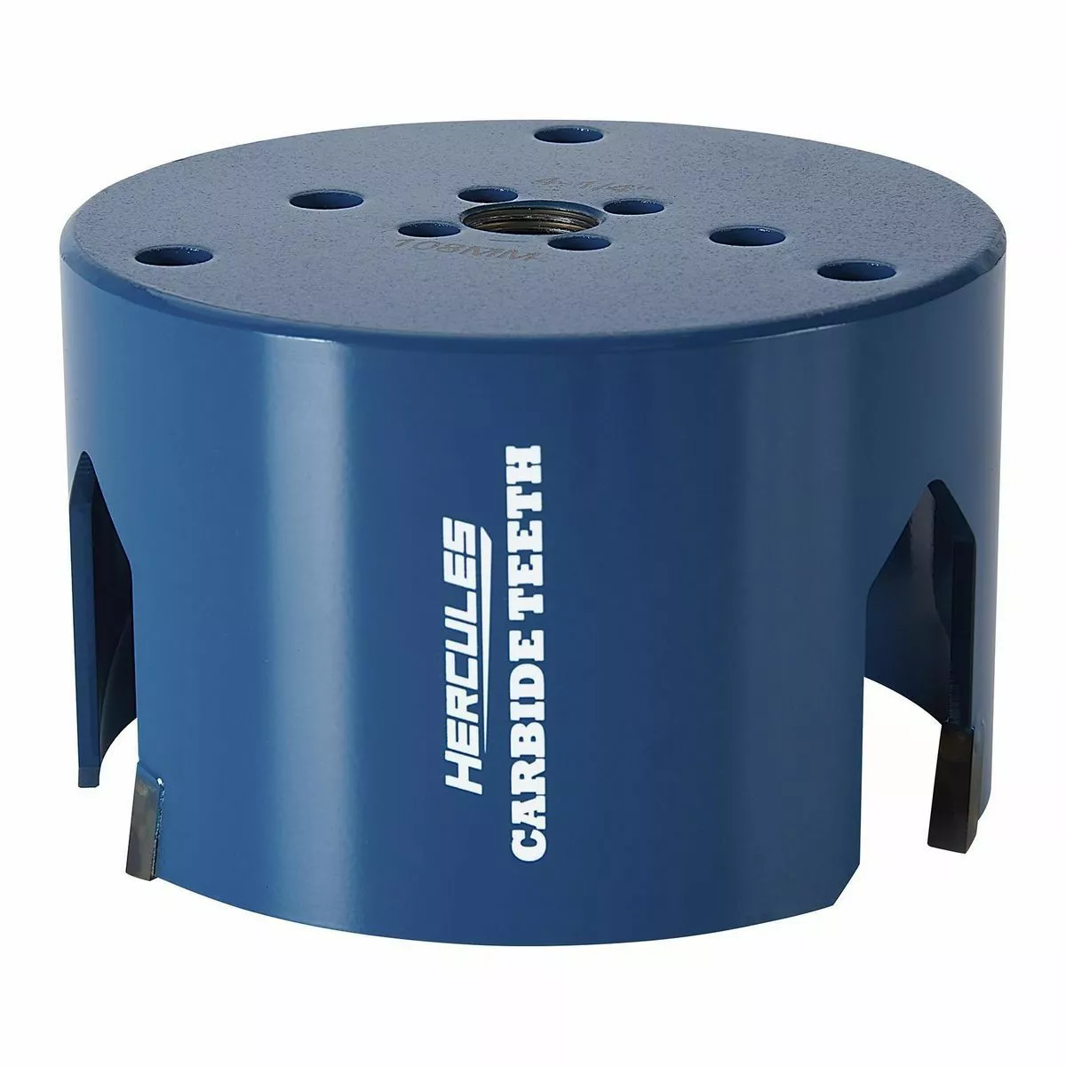 The HERCULES™ 4-1/4 in. Multi-Material Carbide Hole Saw is designed with premium carbide teeth that are tougher and longer lasting.* This multi-material hole saw is ideal for fast rough-cuts in the toughest materials, including wood with nails, fiber cement, plaster board, ceramic tile, wood, brick, block, drywall, and roofing.