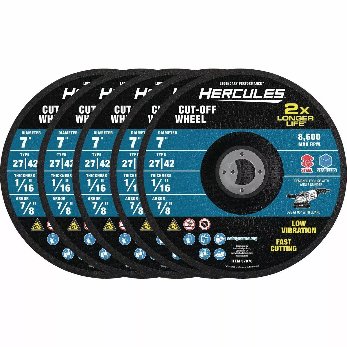 HERCULES 7 in. x 1/16 in. x 7/8 in. Type 27/42 Metal Cut-off Wheel 5 Pk.