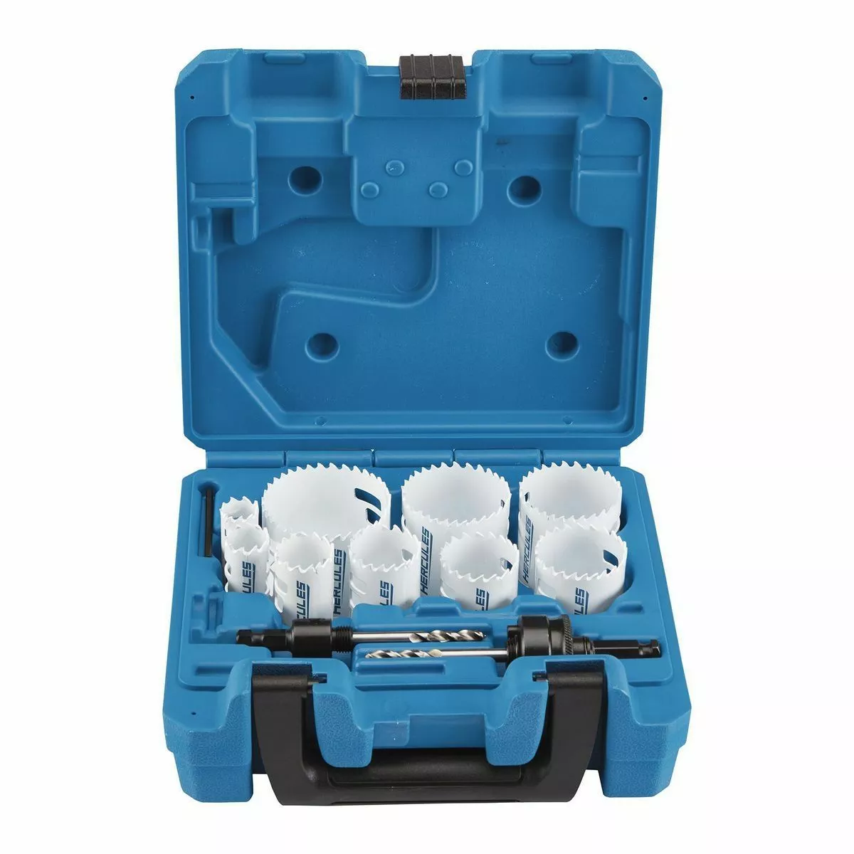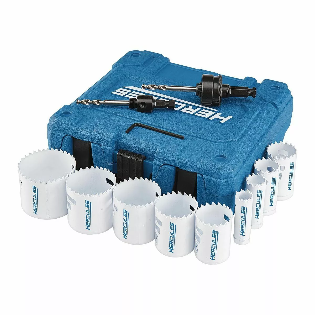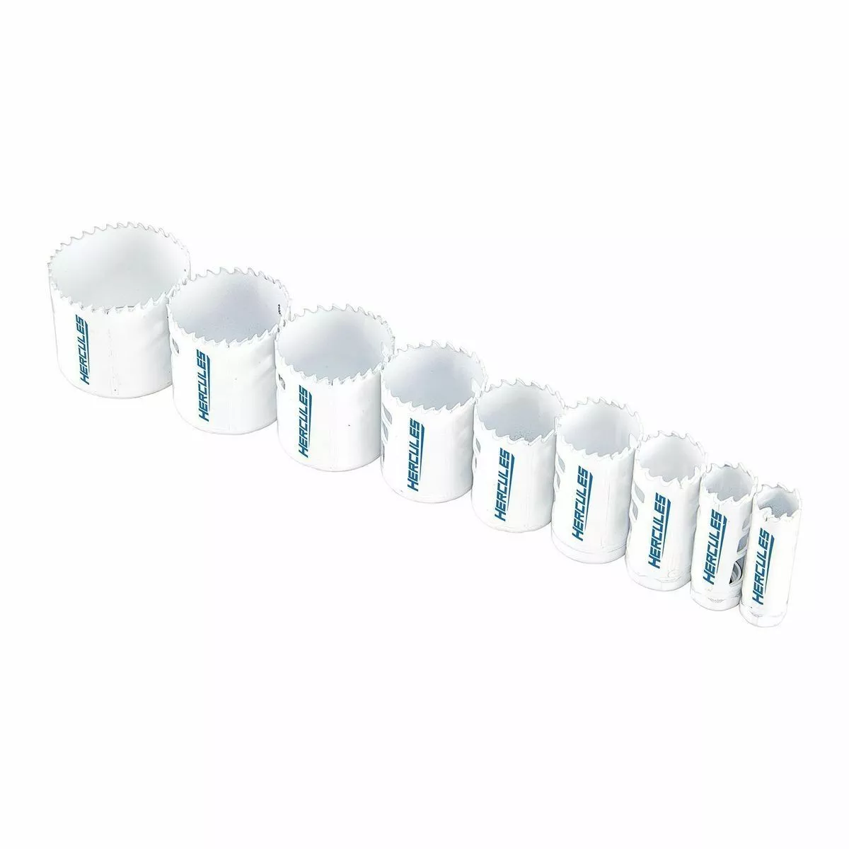Cut precise holes in wood, plastic, aluminum, brass, steel alloys and even stainless steel with this bi-metal hole saw set. The set is constructed with alloy steel electronic beam welded to M42 high speed steel cutting edges for tougher, longer lasting performance. Features include variable teeth for less vibration, a durable enamel finish that won’t rust or corrode and a heavy duty solid backing plate that won’t flex to ensure accurate holes every time.
